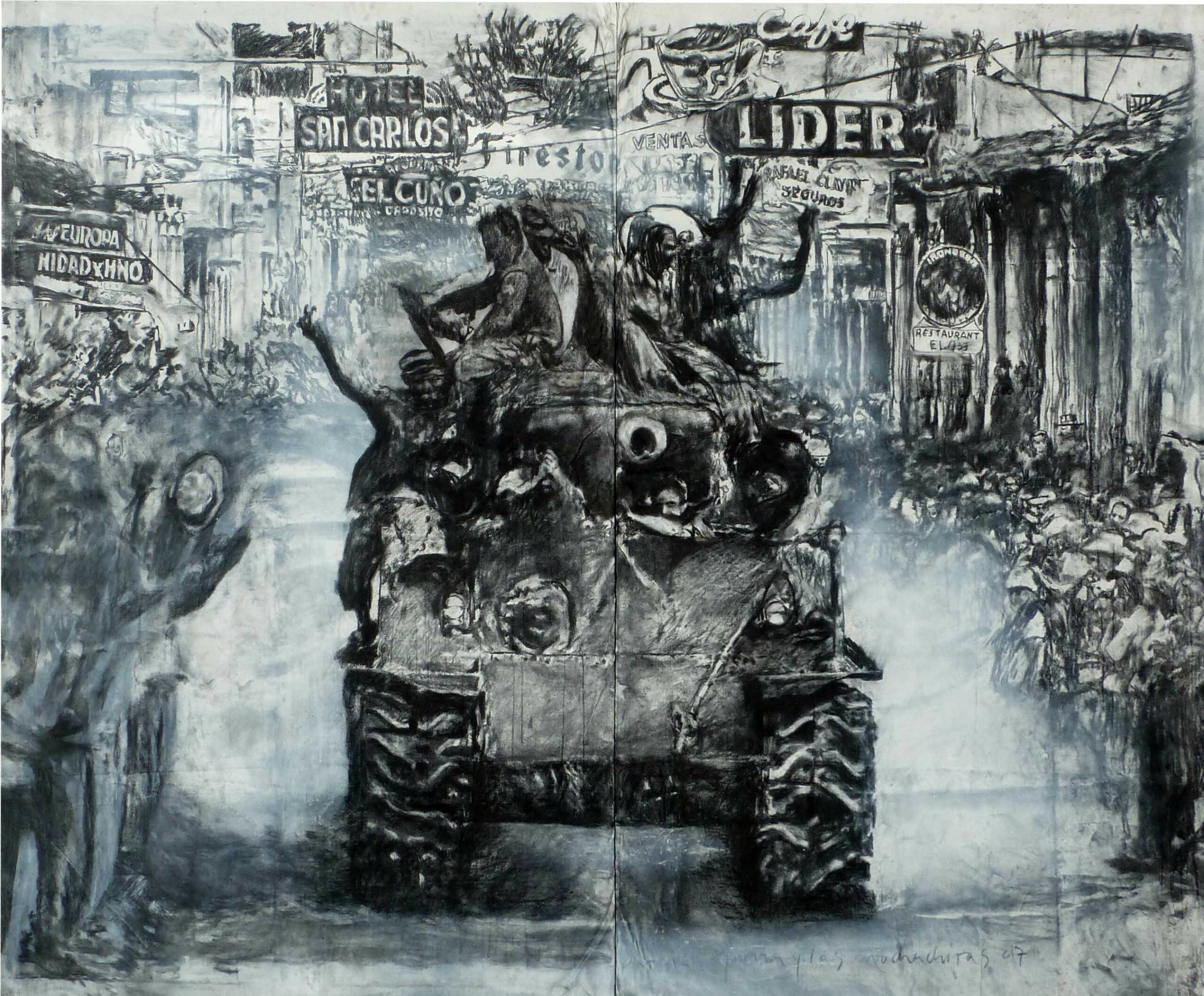 , Patria, guerra y las muchachitas 218 x 302 cm charcoal on canvas